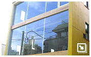 近隣対策として正面不透明の視界制御フィルムを施工。