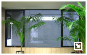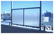 マンションの形状がL字型のため、隣接する部屋の視界制御として一方向不透明で対処。